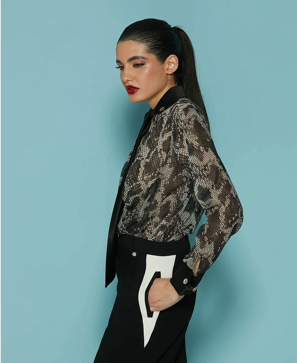 Blusa APPUNTASA body con raso più fusciacca collo fantasia pitonata